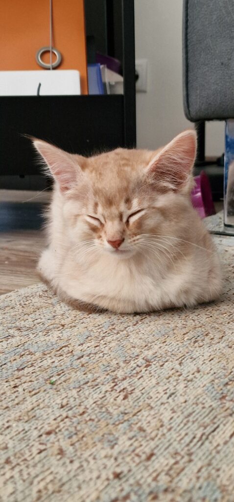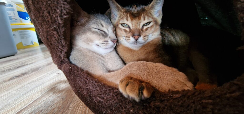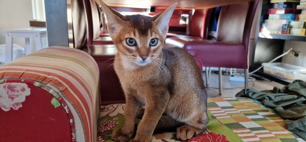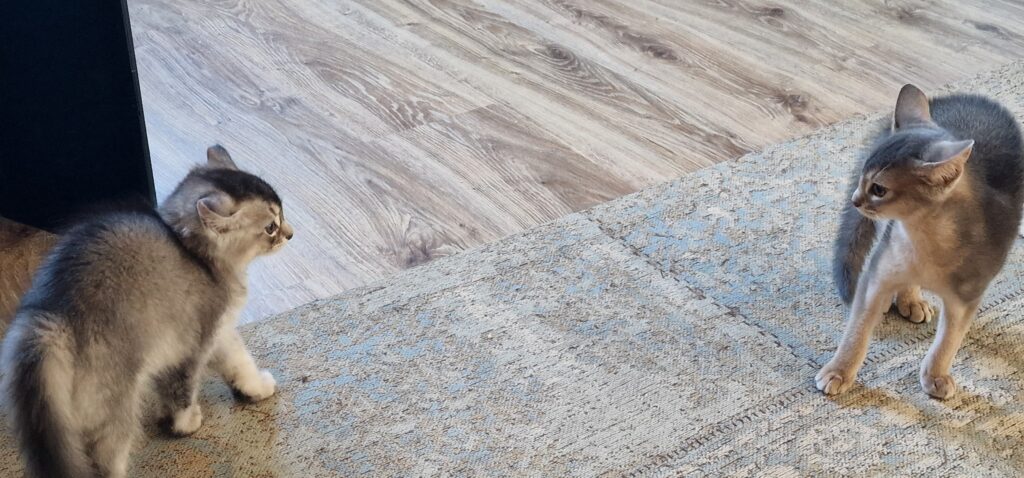 Onze katten zitten daar een beetje tussenin: ze zijn wel alert, lopen rond en mauwen, maar leggen zich er uiteindelijk ook wel bij neer. Als de rits dan opengaat om ze eruit te vissen en mee te nemen naar de keurmeester, is dat ook altijd een beetje spannend – voor kat én mens.