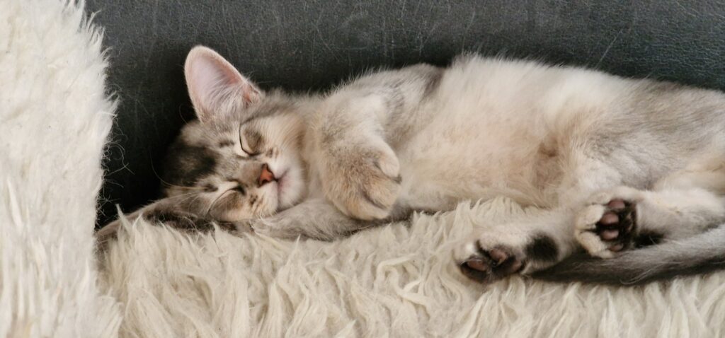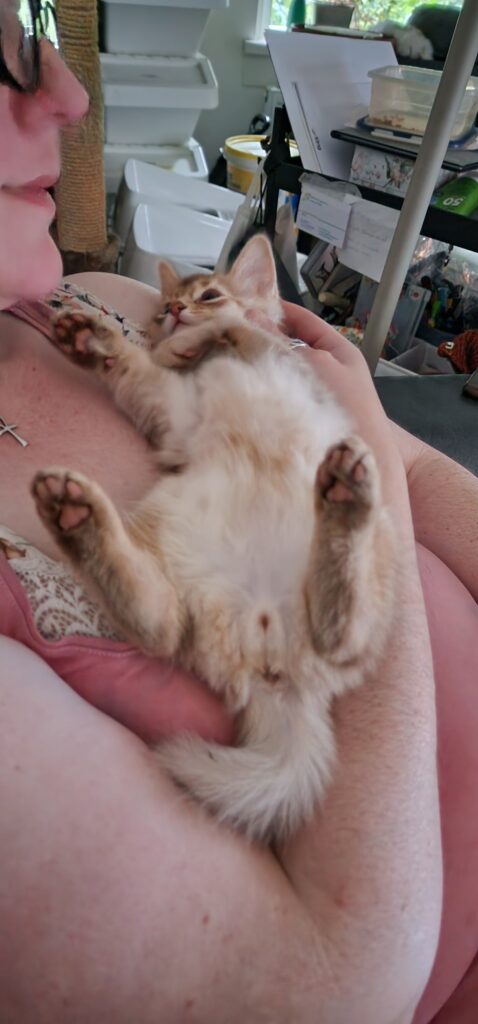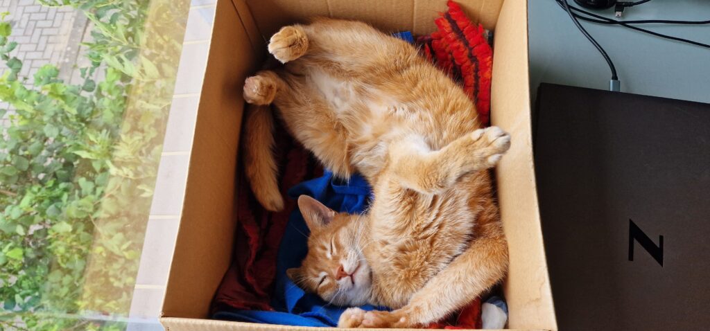 Zo’n kattenshow is voor de katten altijd een beetje vervelend. Je moet van ’s ochtends vroeg tot ’s middags laat (en als je pech hebt tot in de avond) in zo’n klein hokje zitten met wat voer en een bak… De een legt zich er (letterlijk) bij neer en tukt de tijd door. De ander laat zich luidkeels horen en probeert zich een weg naar buiten te krabben – altijd zonder succes, overigens.