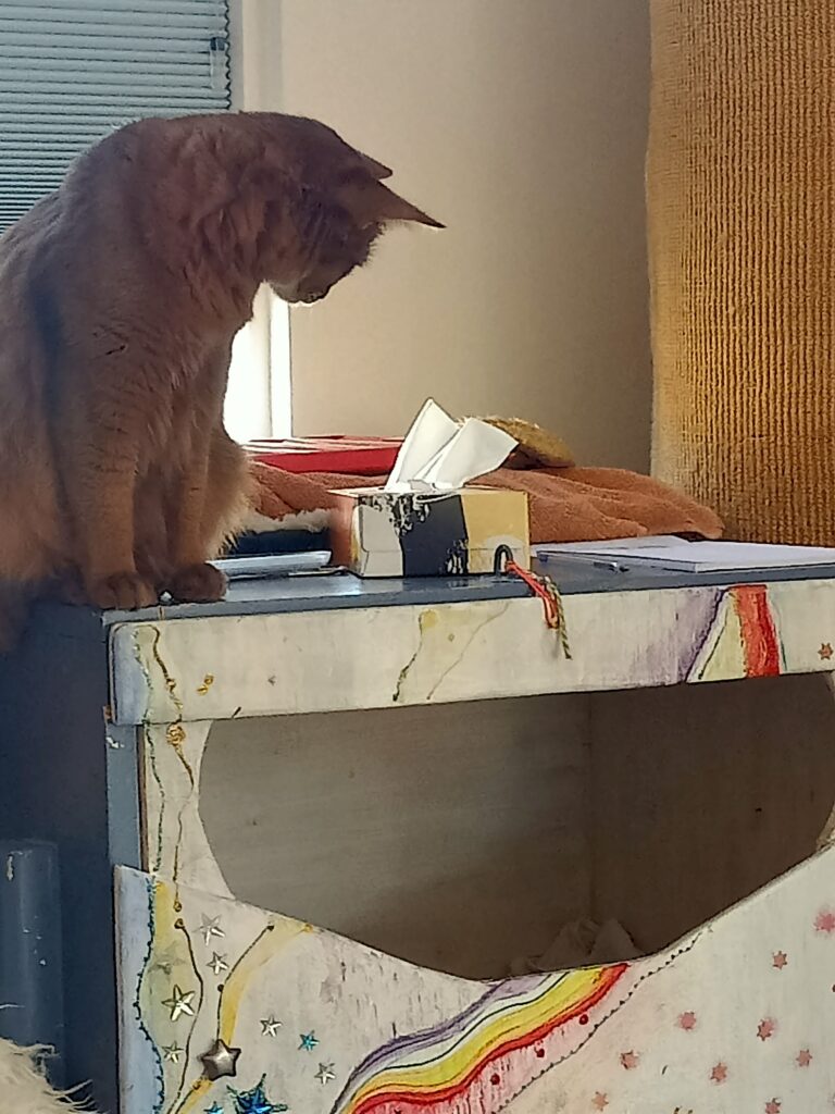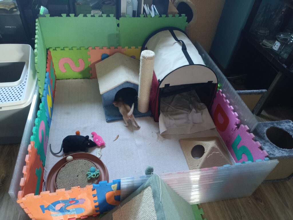 De andere katten hebben inmiddels ook redelijk hun draai gevonden. Rick rent regelmatig met de gekke 5 minuten door de huiskamer en Snoot komt steeds dichterbij. Vanmiddag was ze zelfs zo dapper om bij de kittens te gaan kijken om vervolgens een tukje in de krabpaal te doen. Ronja vond het prima, kwam even kijken en ging weer op dr dooie gemakkie naar buiten. Knappe meiden!