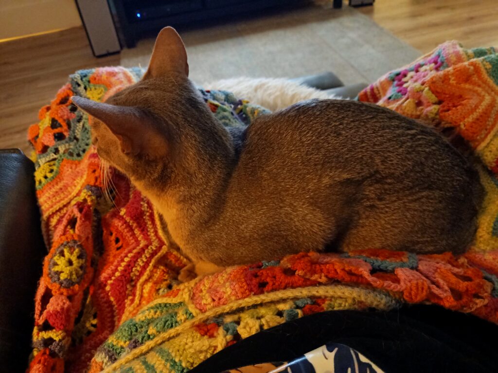 Snoot moet erg wennen aan de nieuwe situatie met Ronja en de babies. Dat zorgt voor veel spanning, door de huiskamer sluipen, blazen, grommen en algeheel onblij gedrag. Snoot wil normaal graag knuffelen, maar als t vrouwtje naar de babies ruikt (want net geknuffeld met het nest of gewogen oid) dan is het grrrrbrrr nee dat vind ik eng. Afgelopen nacht heeft ze gelukkig wel weer op bed geslapen en vanmorgen kwam ze extra knuffels halen, zoals normaal! Ik kon haar babybuik een beetje vastleggen, het is niet te missen dat daar iets gebeurt. De rest van de dag zit Snoot het liefst in de tuin, uit de weg van Ronja en lekker loeren naar vogeltjes, andere katten of de buurhond hiernaast.